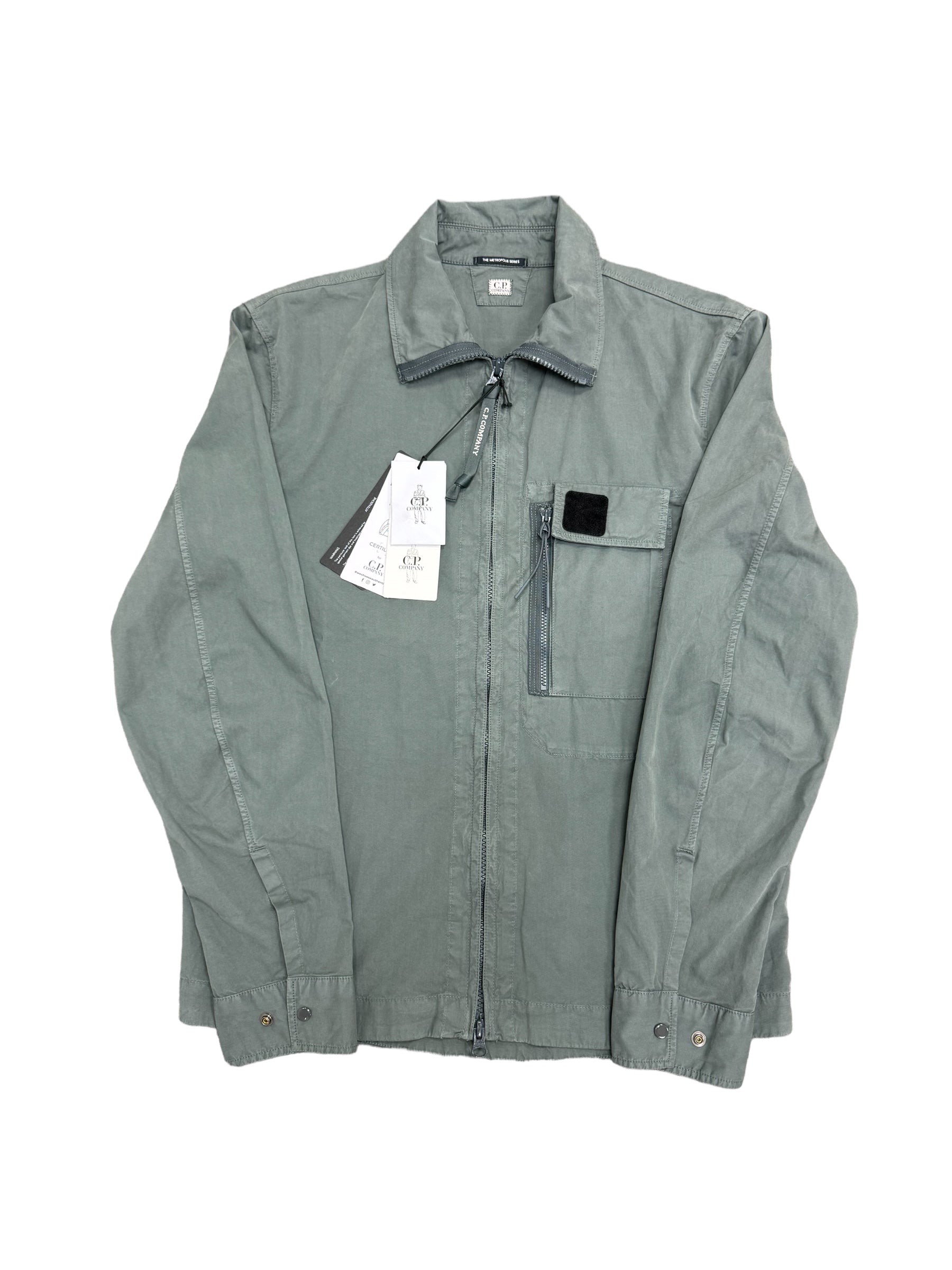 C.P Company Long Sleeve Zip Up Gabardine Overshirt - Stone/Grey - Colour #978