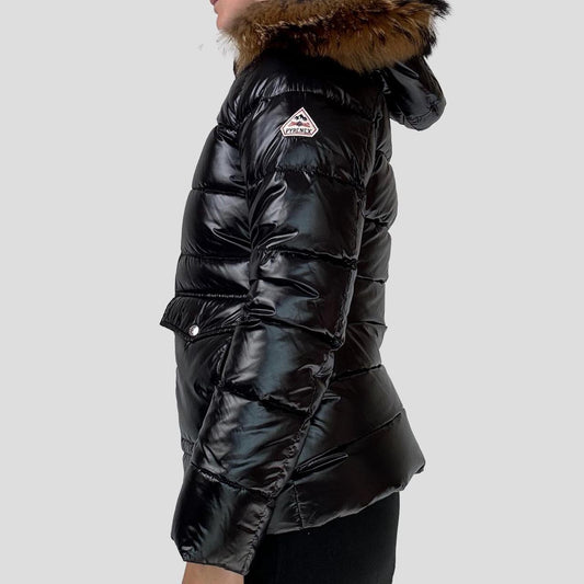 Pyrenex Womens Shiny Down Jacket in Black - With Fur Hood